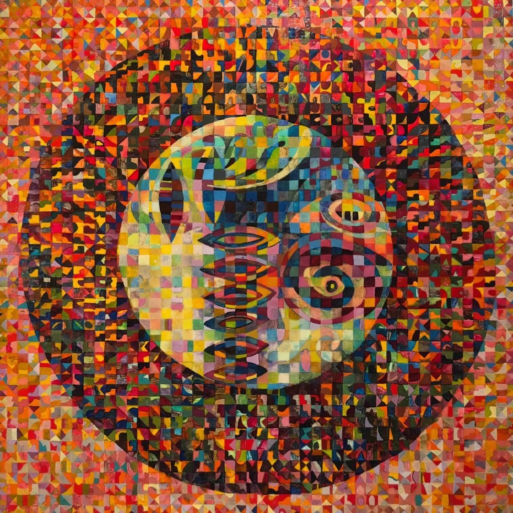 Built through years of working with abstract, material-based processes, the series draws from painting, sculpture, and video as interconnected practices. Layered color, hand-built geometry, and repeated symbolic forms reference traditions ranging from illuminated manuscripts and sacred diagrams to modern abstraction, while remaining grounded in direct, physical making. Across the sixteen Dream Catchers, clarity is never forced; instead, attention, patience, and presence are treated as the true guides, allowing each work to operate as a quiet, luminous space for reflection and inward navigation.